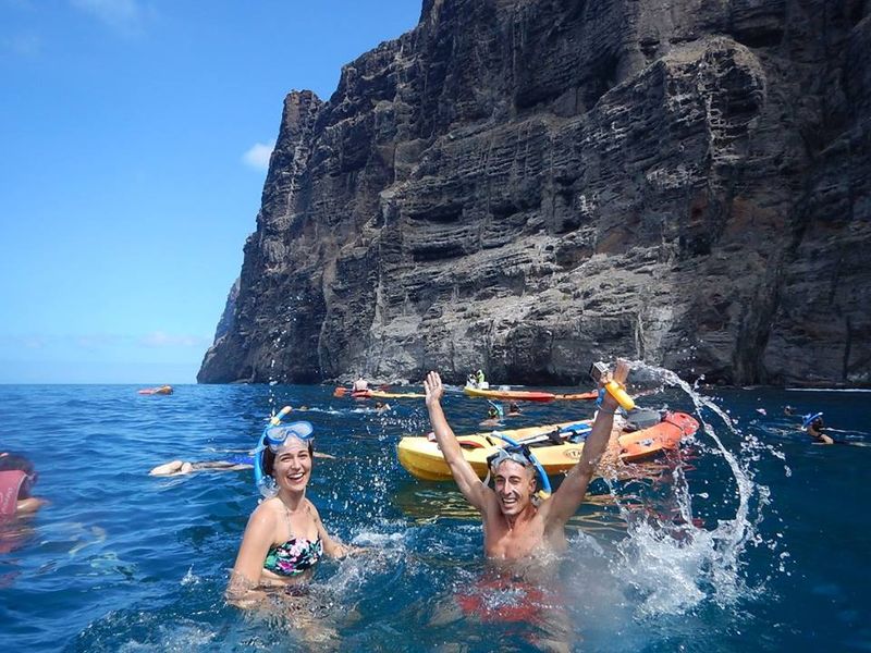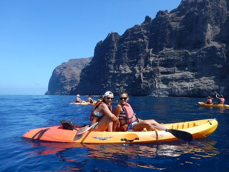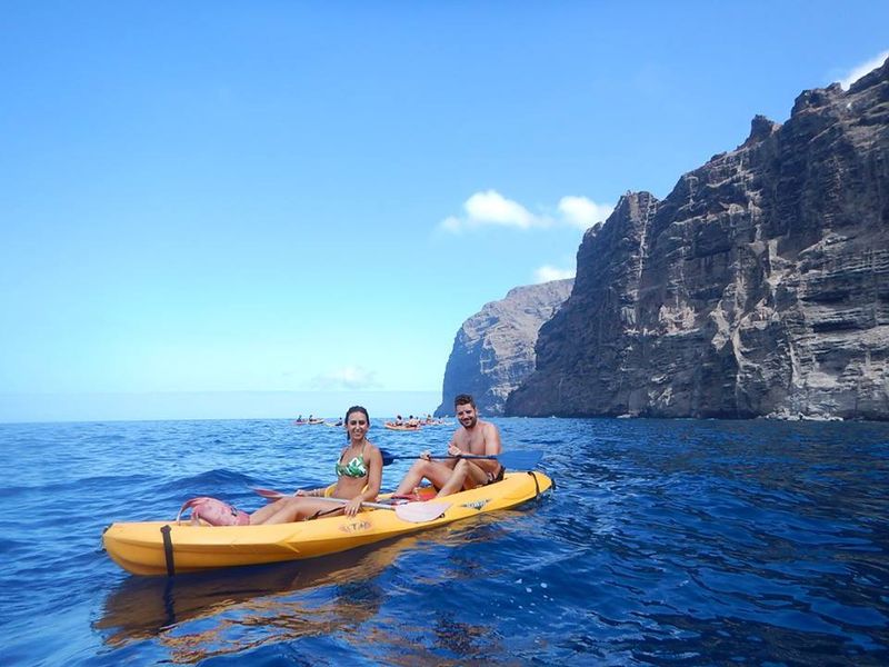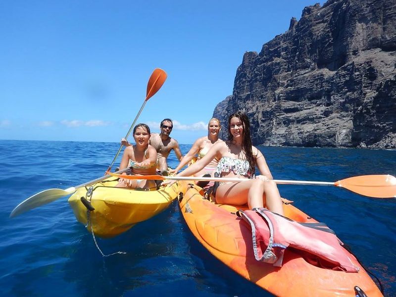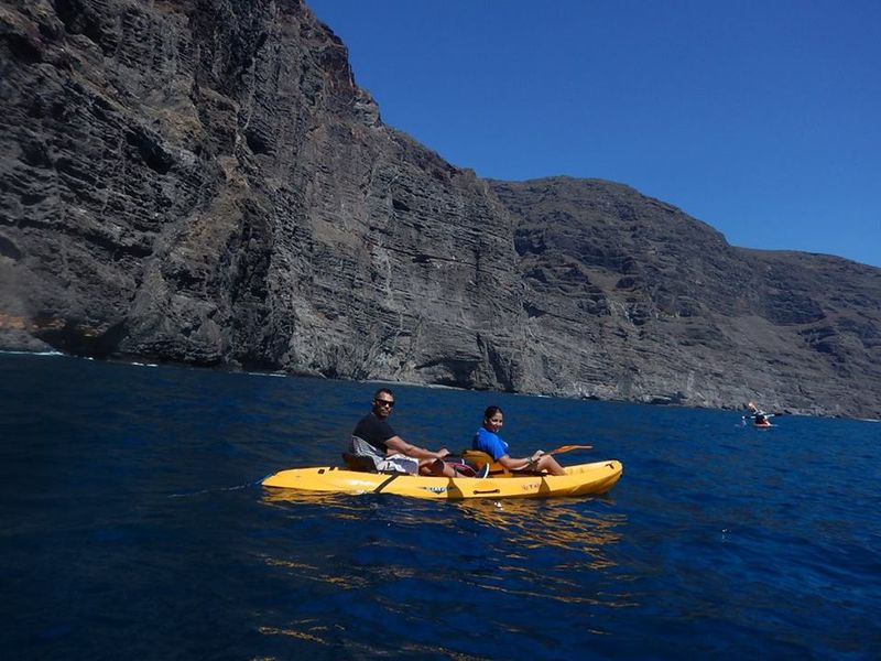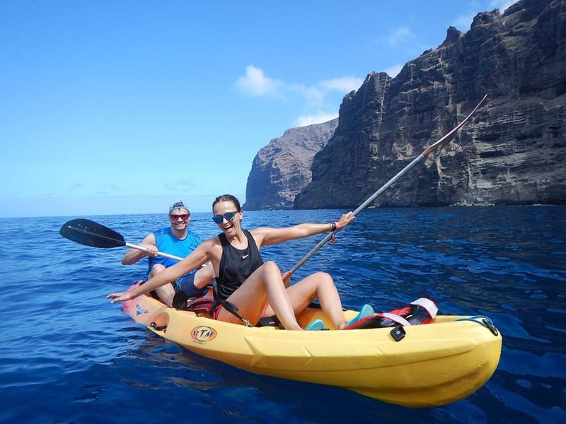 Daarna nemen we de kajaks om de overtocht van Masca naar Los Gigantes te maken, 2 uur kajakrit langs de spectaculaire kliffen.